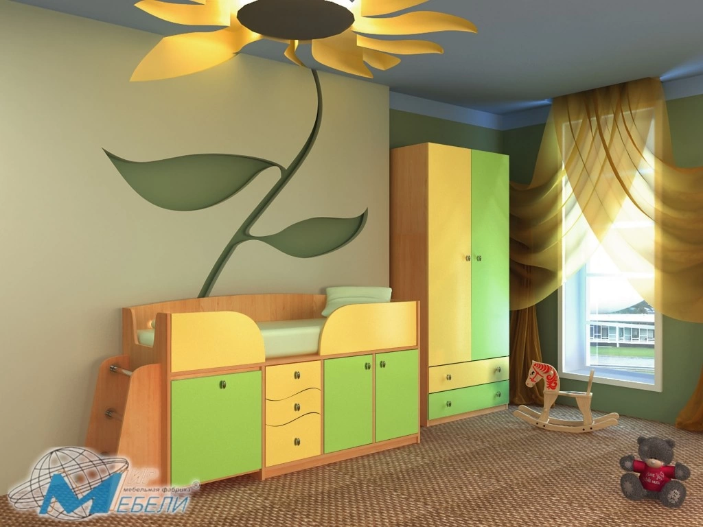 - Под спальным местом расположен бельевой шкаф глубиной 800 мм +3 выдвижных ящика + выдвижной письменный стол