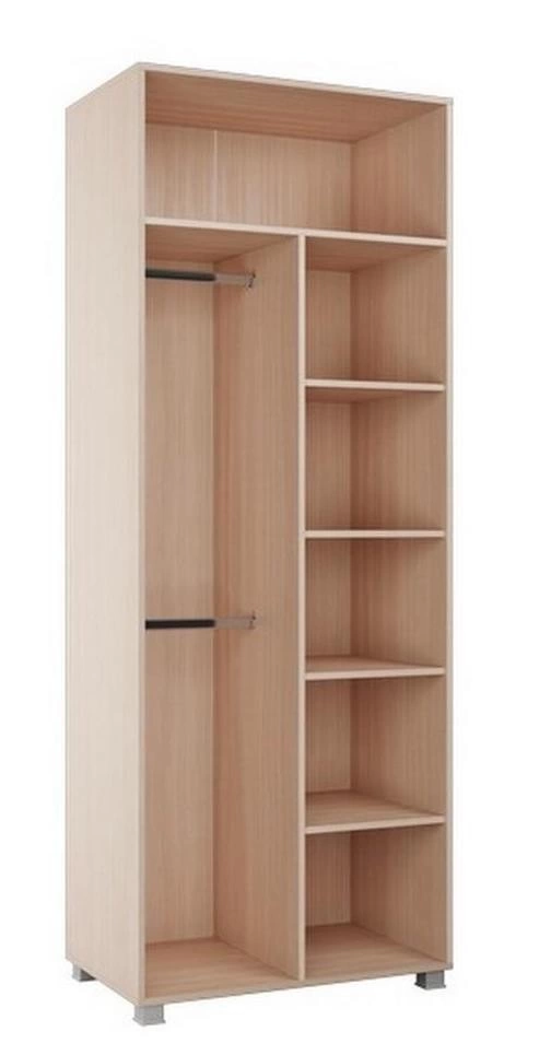 - Шкаф двухстворчатый состоит из антресольной ниши во всю ширину, секцией с полками и секцией с 2мя штангами, данные секции универсальные, могут располагаться с любой стороны.