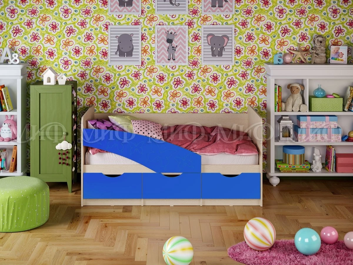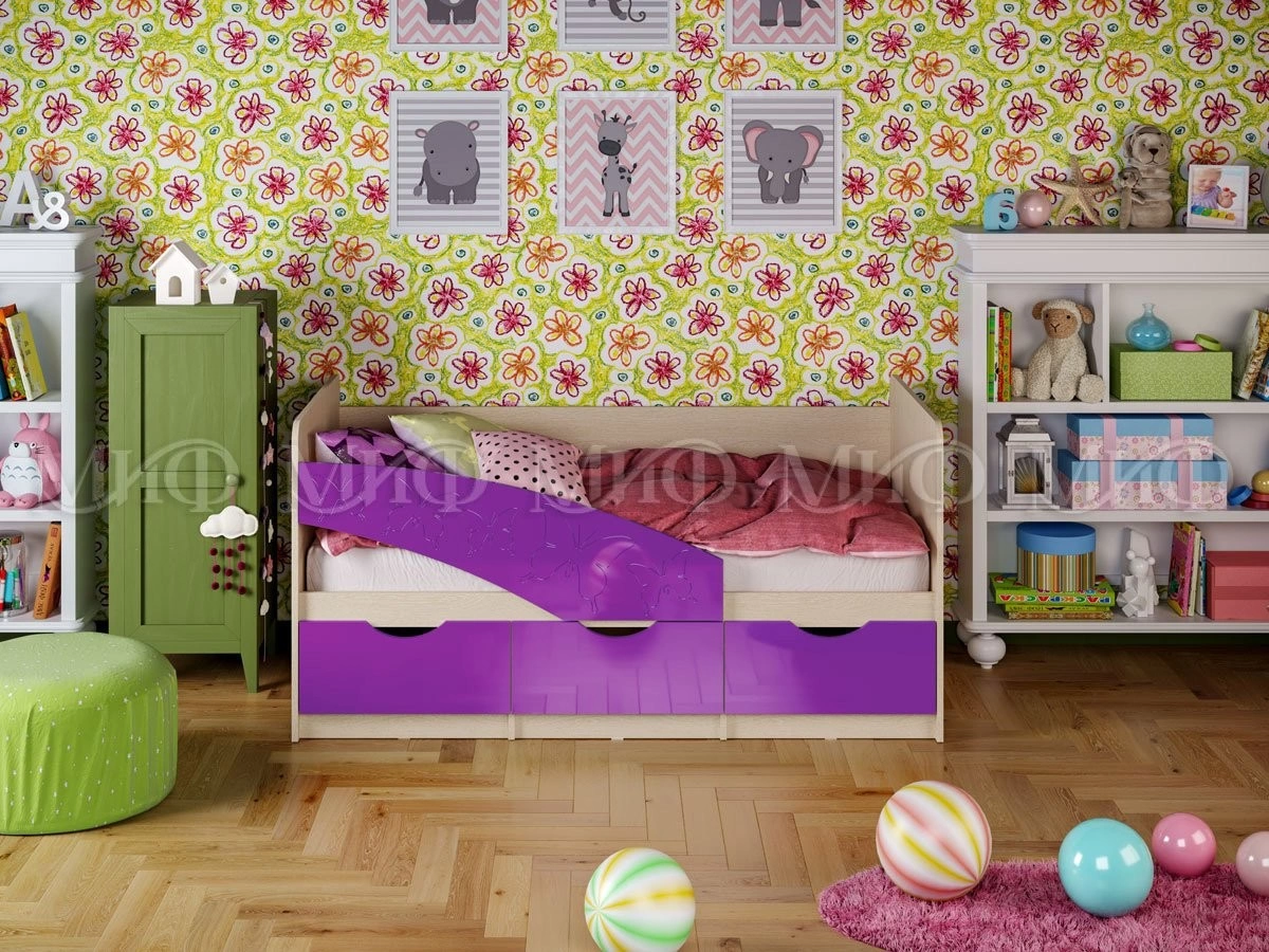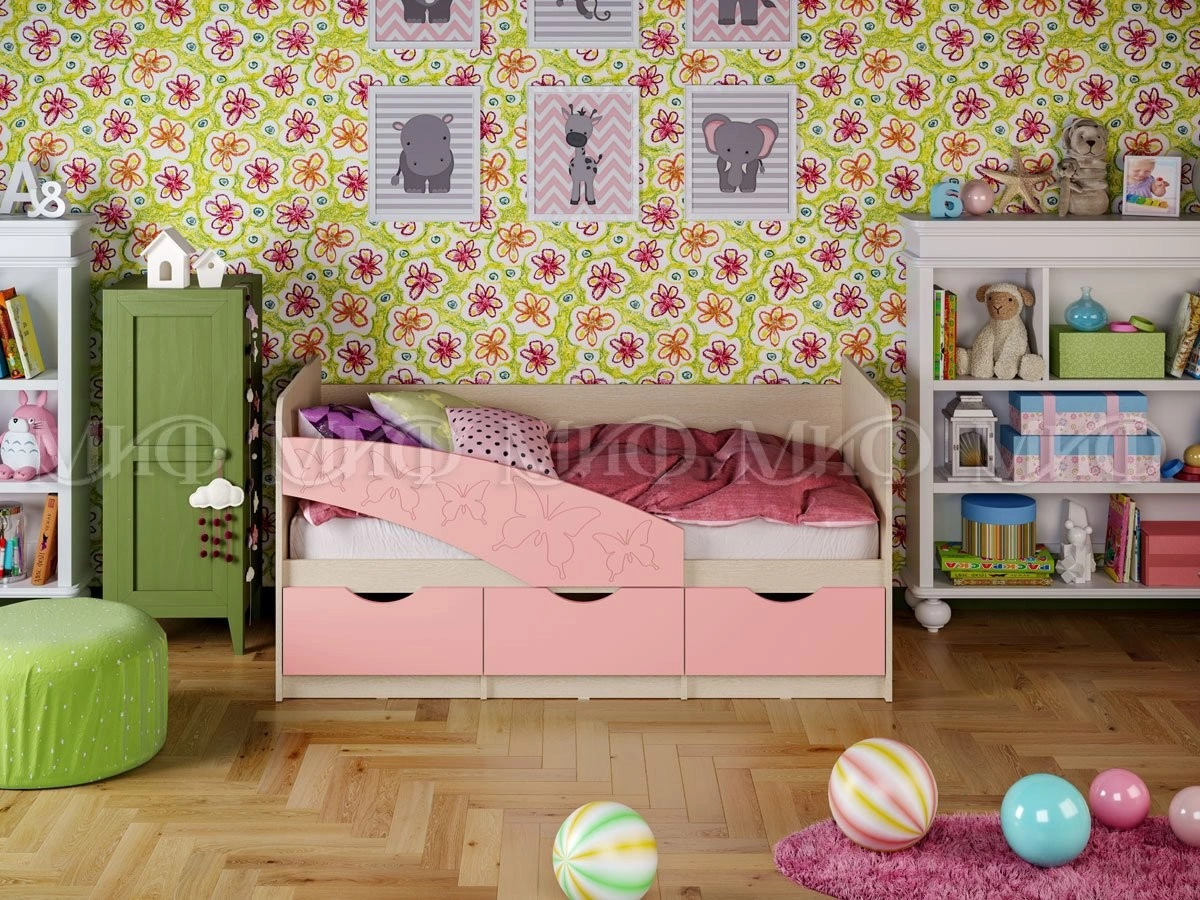 Кровать Бабочки безопасна для ребенка младшего возраста за счет скругленного бортика с рисунком Бабочки. Под спальным местом находиться центральный выдвижной ящик и две боковые ниши с откидными дверцами, добавляющие кровати функциональности. Исполняется в широкой цветовой гамме, что позволит легко выбрать Вам нужную по цвету.