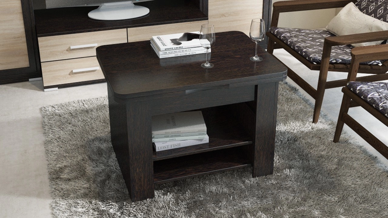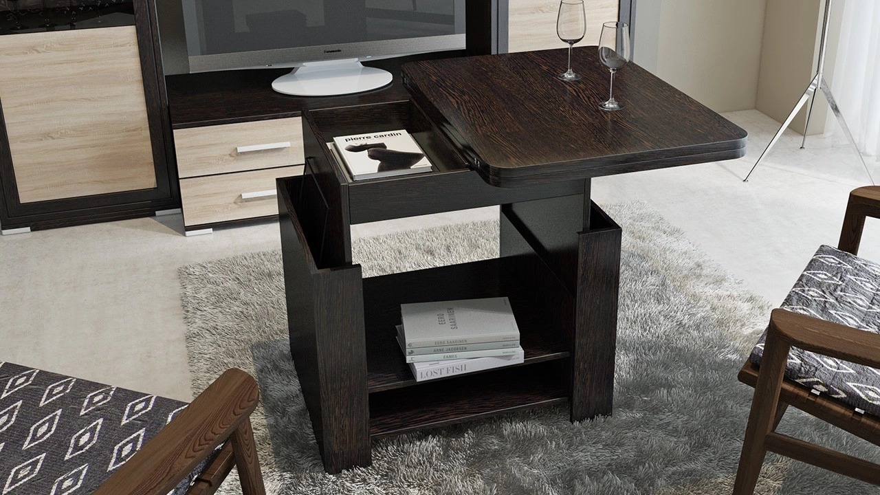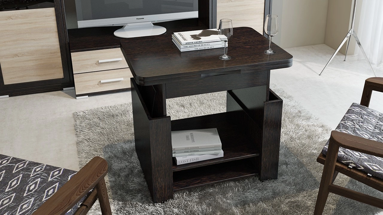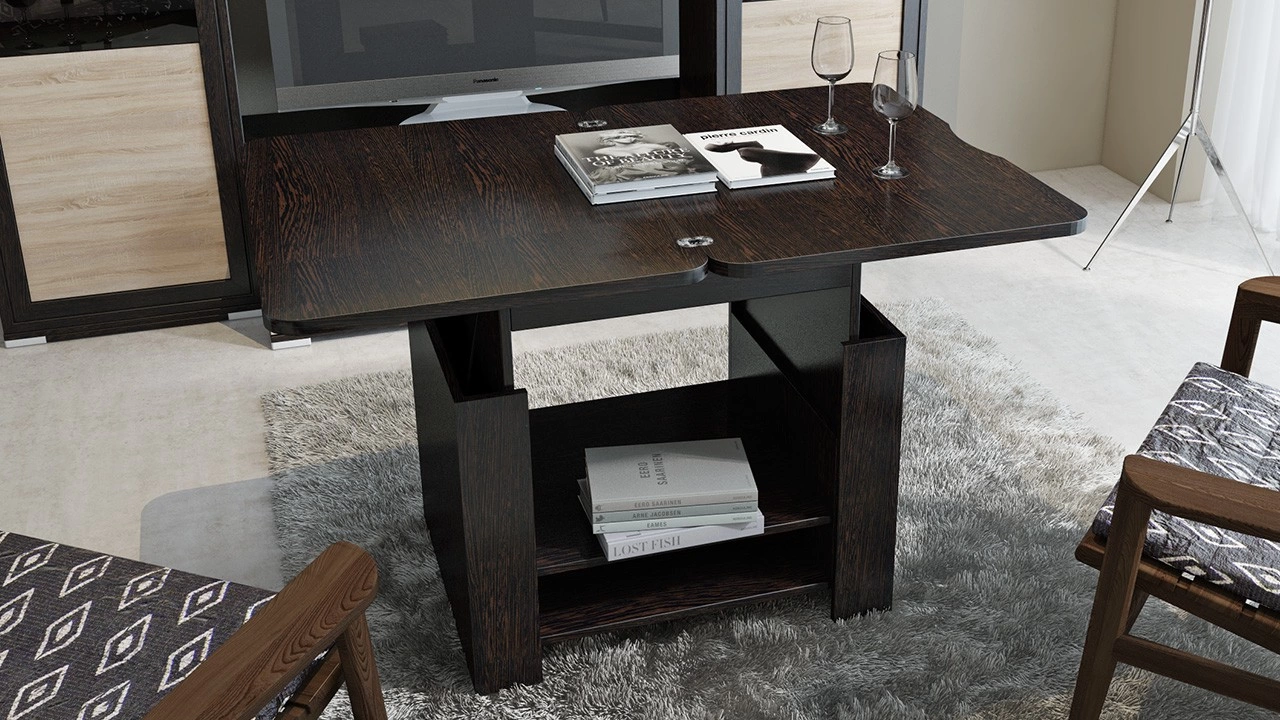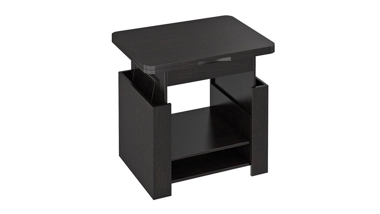 Компактная многофункциональная модель способна обеспечить удобство в самых разных ситуациях: журнальный стол-трансформер можно использовать по прямому назначению — для дополнения мягкого гарнитура, как письменный или компьютерный стол, а также в качестве тумбы для хранения различных вещей. Прочная конструкция трансформирующих механизмов и отличное качество материалов гарантируют долгий срок службы, а стильный дизайн — эстетичность интерьера комнаты. Длина стола в разложенном виде-1200 мм. Габаритная высота в разложенном виде - 750 мм.