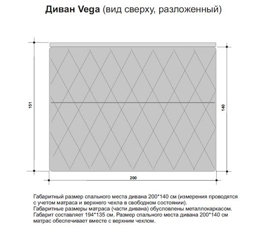 Размер спального места дивана (с учетом матраса и верхнего чехла) 200*140