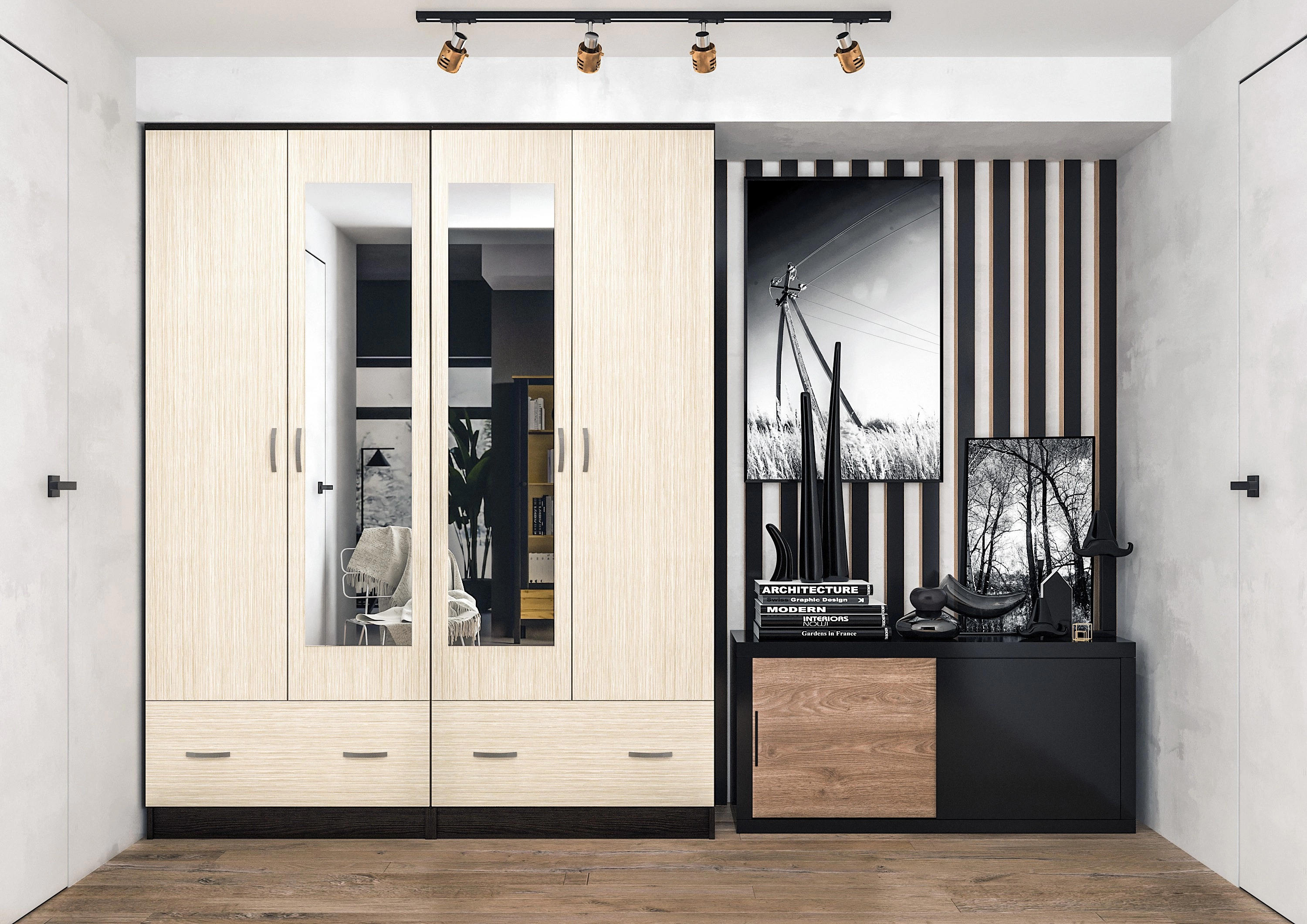 - Модель состоит из двух двустворчатых шкафов