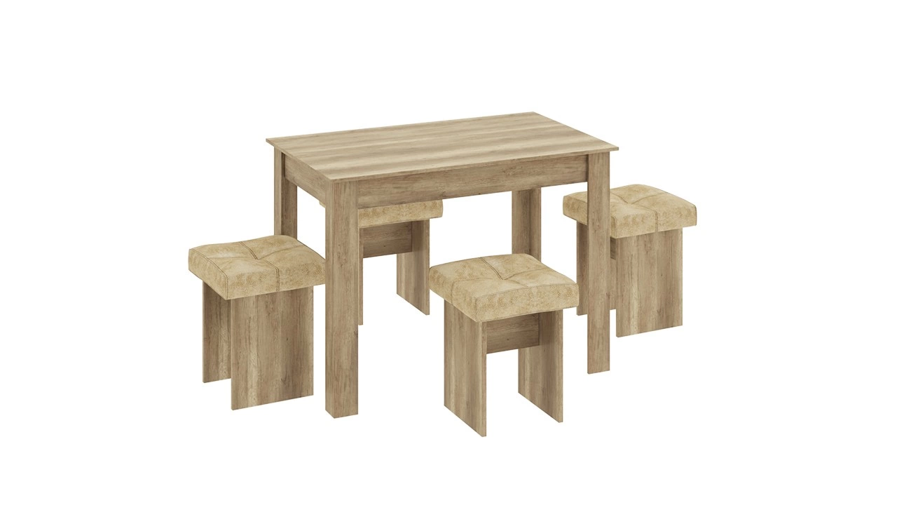 - Обеденная зона "Мадрид №2" состоит из практичного стола и компактных табуретов.